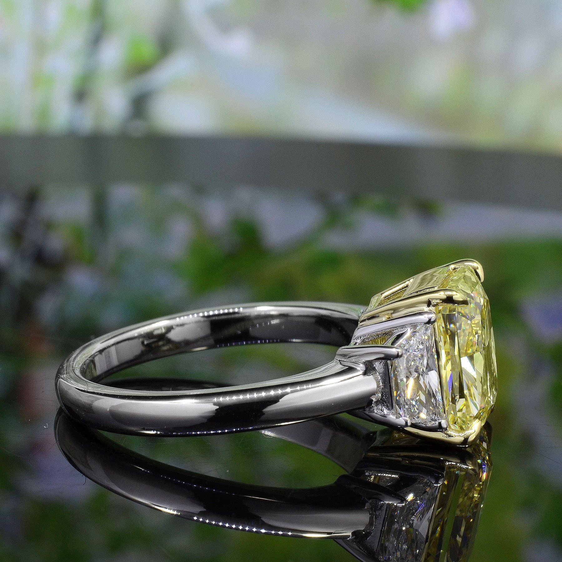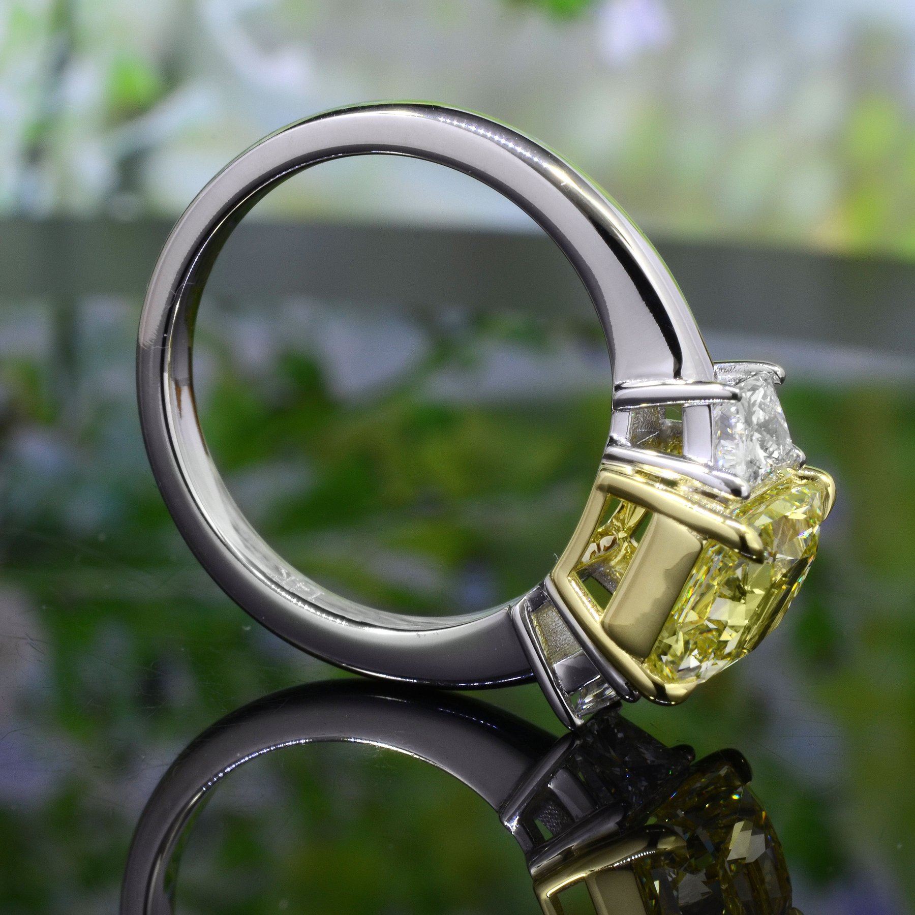 Natural 3.92 CTW Intense Yellow Canary Cushion Cut & Half Moon Diamond Ring 18KT Two-tone
