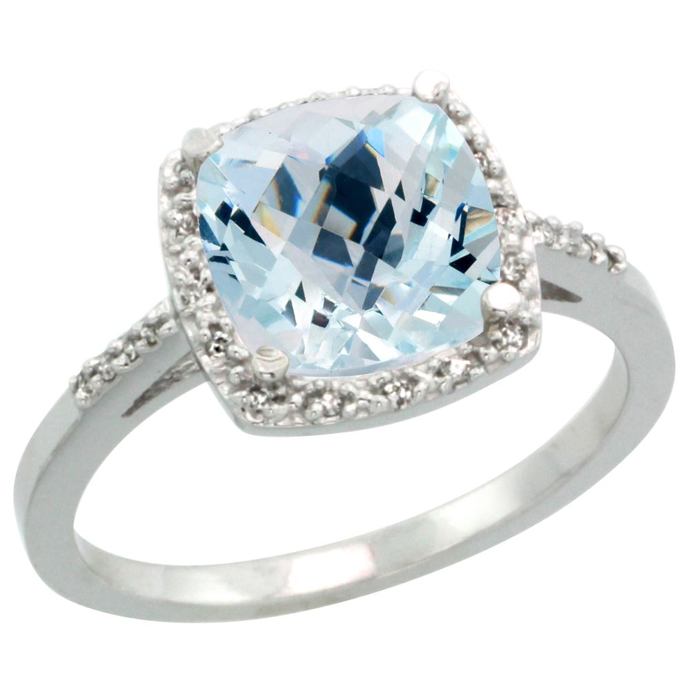 REF-58A2V ---- SKU:SC-CW412136 ---- Manufacturer's Suggested Retail Price - $1800.00 ---- Natural 3.92 ctw Aquamarine & Diamond Engagement Ring 14K White Gold