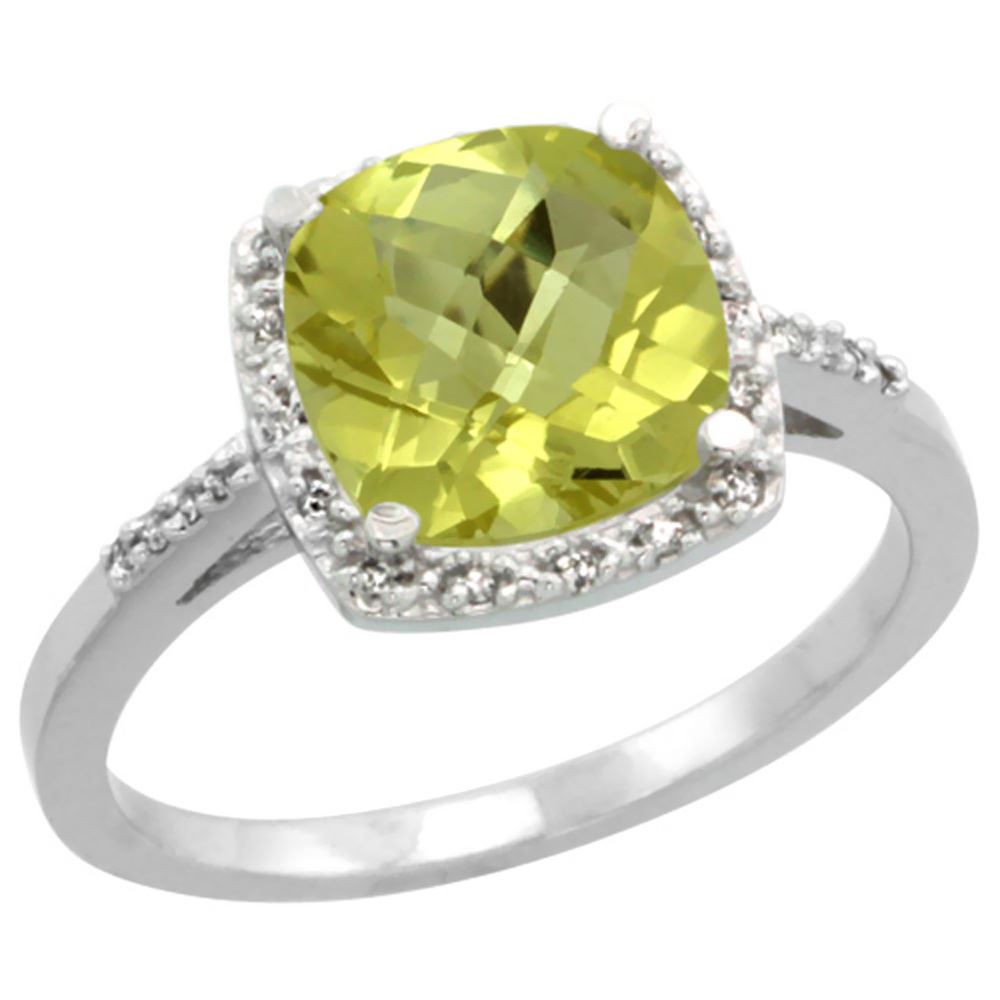 REF-25M5H ---- Manufacturer's Suggested Retail Price - $800.00 ---- Natural 3.92 ctw Lemon-quartz & Diamond Engagement Ring 10K White Gold