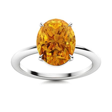 Natural 3.97 CTW Citrine Solitaire Ring 14K White Gold