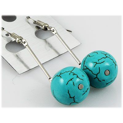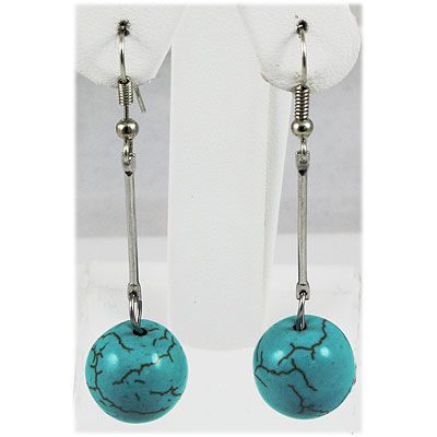 Natural 36.80ctw Round Turquoise Silver Earring **|**|** One of a kind 2" Sterling Silver Hook Earring hand wrapped to Natural Round Turquoise Stone 0.55inch in size ; MSRP: $300