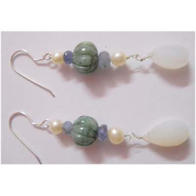 Natural 39.60 ctw Semi Precious Earring .925 Sterling **|**|** Natural 39.60 ctw Pearl/Sapphire/Semi Precious Earring .925 Sterling Silver ; MSRP: $150