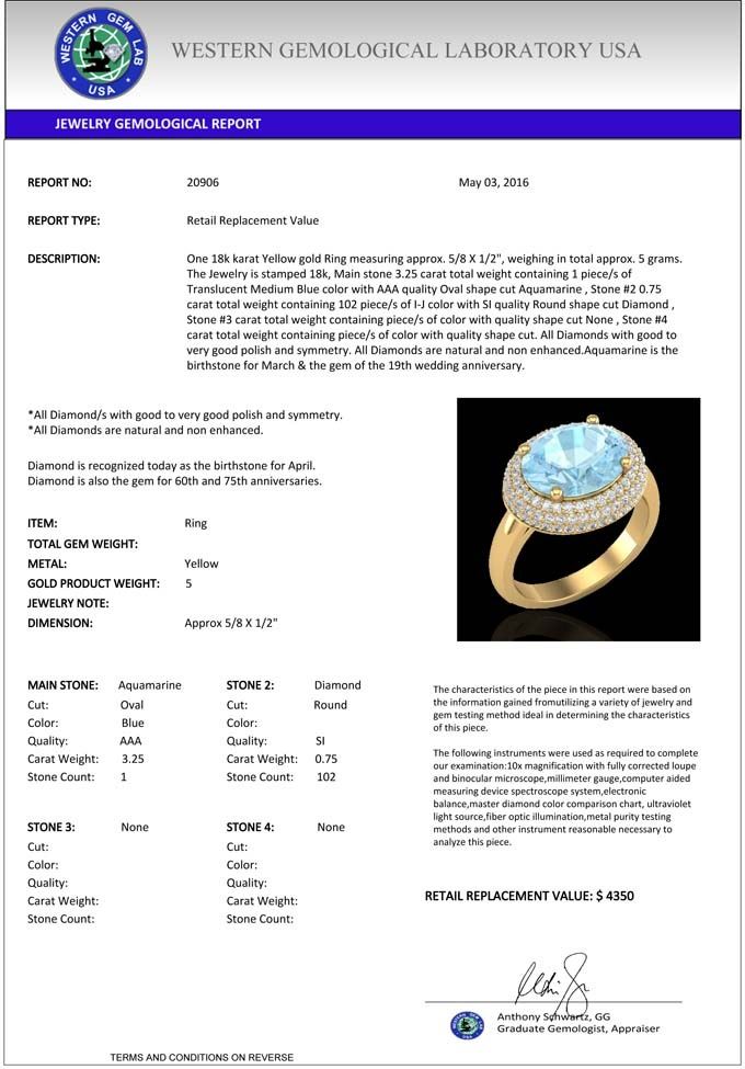 total approx. 5 grams. The Jewelry is stamped 18k, Main stone 3.25 carat total weight containing 1 piece/s of Translucent Medium Blue color with