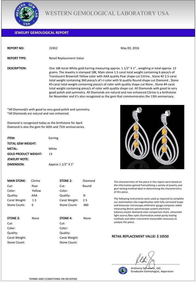 total approx. 13 grams. The Jewelry is stamped 18K, Main stone 1.5 carat total weight containing 6 piece/s of Translucent Brownish Yellow color with