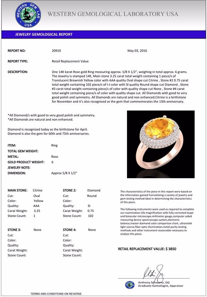 total approx. 6 grams. The Jewelry is stamped 14K, Main stone 3.25 carat total weight containing 1 piece/s of Translucent Brownish Yellow color with