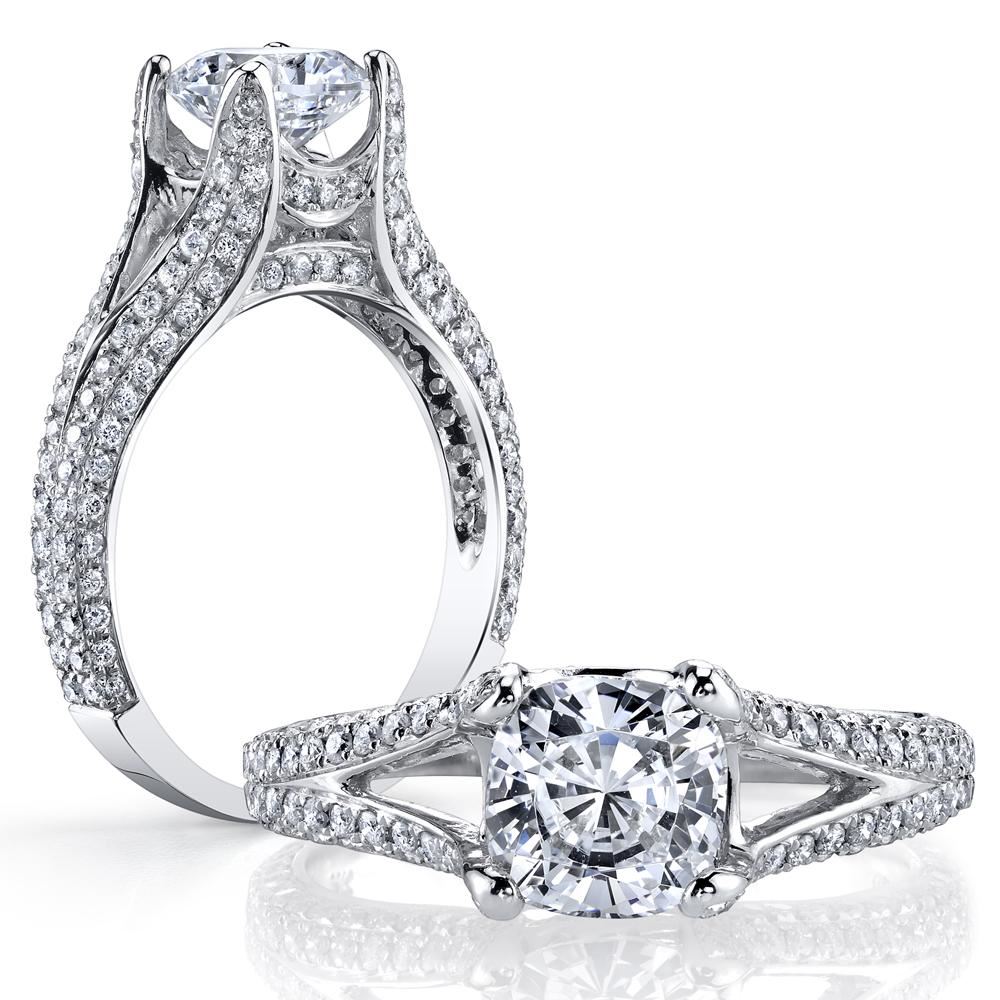 Natural 4.02 CTW Cushion Cut Split Shank Diamond Engagement Ring 14KT White Gold