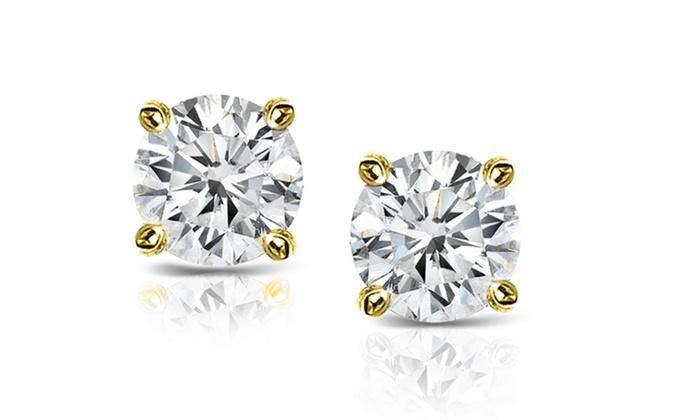 Natural 4.02 CTW Round Brilliant Cut Diamond Stud Earrings Triple Excellent 14KT Yellow Gold