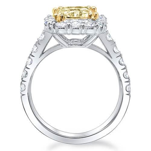 Natural 4.03 CTW Canary Intense Yellow Cushion Cut Halo Diamond Ring 18KT Two-tone