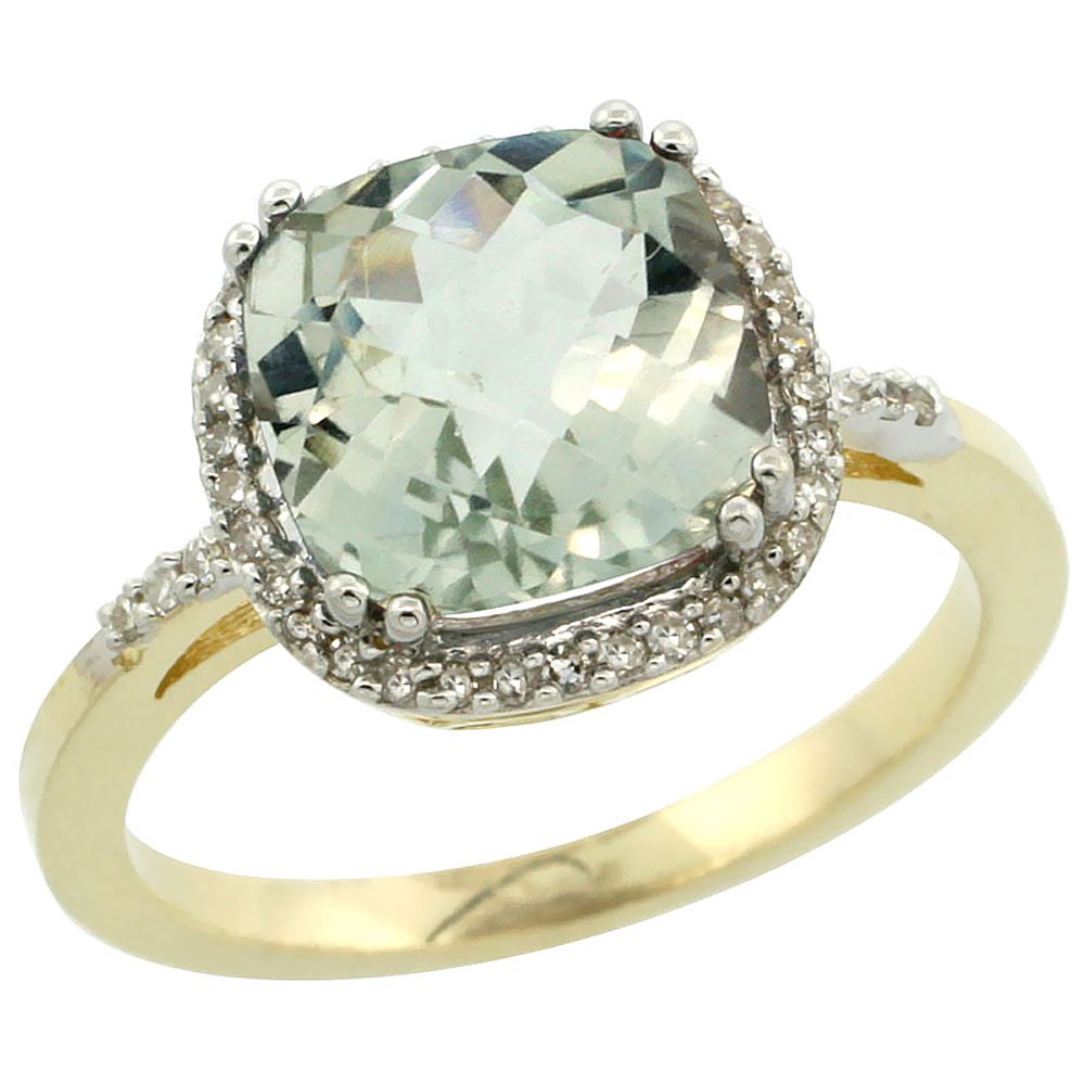 REF-34X3A ---- SKU:SC-CY902121 ---- Manufacturer's Suggested Retail Price - $1100.00 ---- Natural 4.11 ctw Green-amethyst & Diamond Engagement Ring 10K Yellow Gold