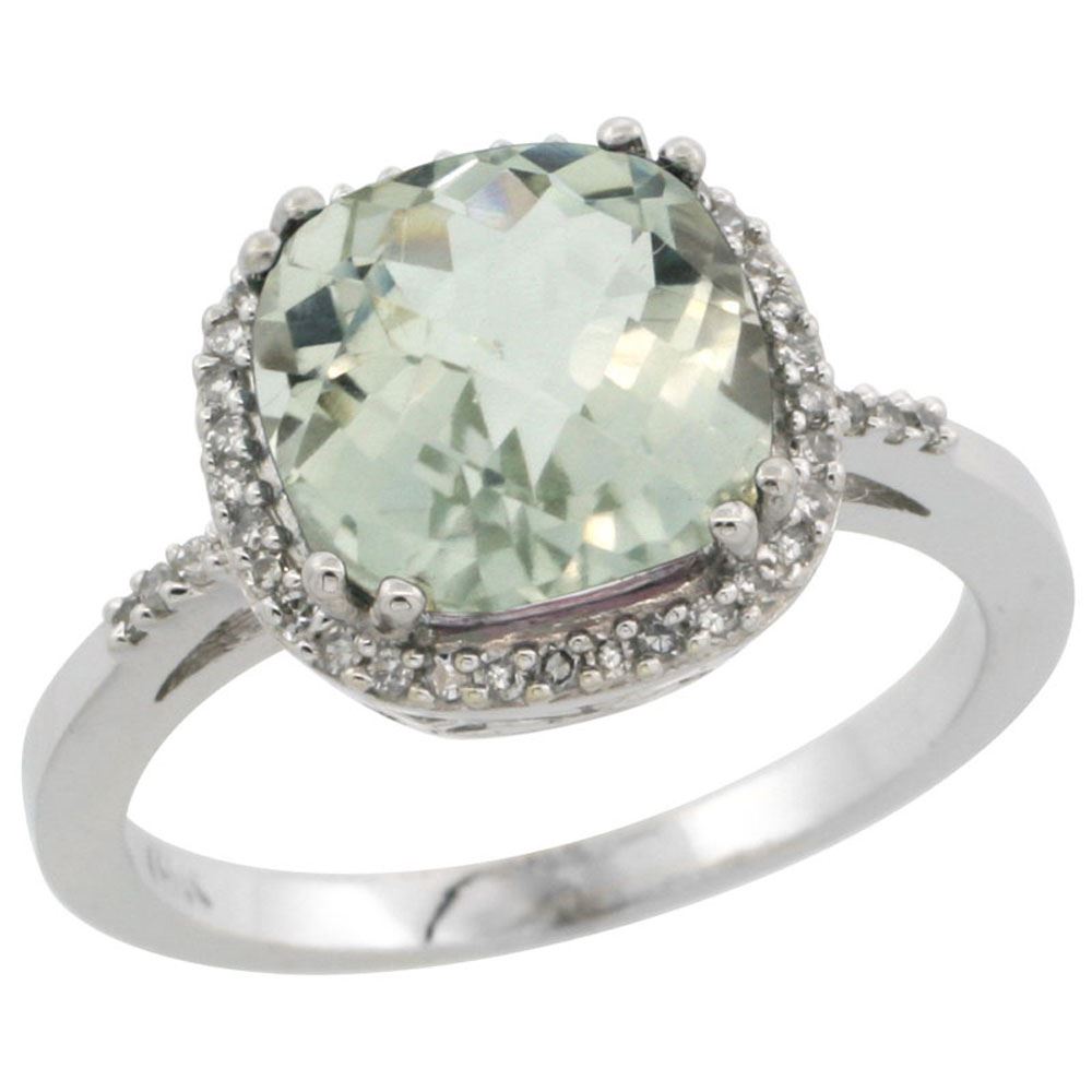 REF-44M2H ---- SKU:SC-CW402121 ---- Manufacturer's Suggested Retail Price - $1400.00 ---- Natural 4.11 ctw Green-amethyst & Diamond Engagement Ring 14K White Gold