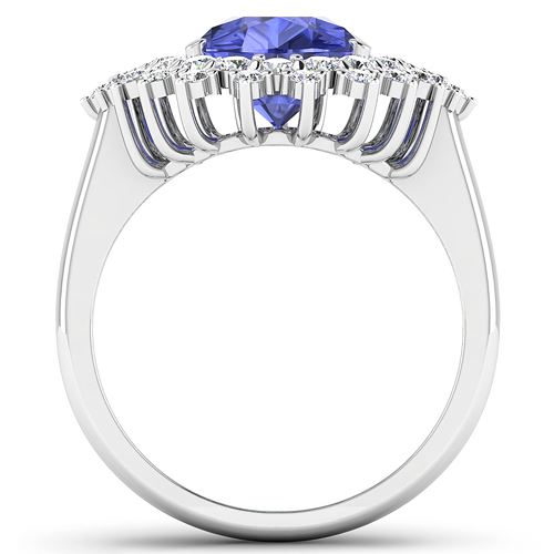 REF-148M6T - Natural 4.14 CTW Tanzanite & Diamond Ring 14K White Gold - REF-148M6T