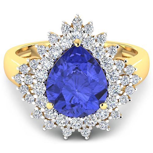 Tanzanite Pears/11x9mm - 1/3.25 ctw Natural Heat Treated E + White Diamond Round/2.00mm - 18/0.54 ctw Prong Setting Natural Not Treated N