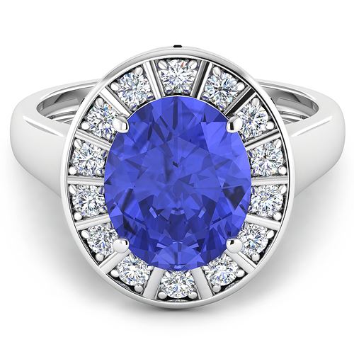 Tanzanite Oval/11x9mm - 1/3.75 ctw Natural Heat Treated E + White Diamond Round/2.00mm - 14/0.42 ctw Prong Setting Natural Not Treated N