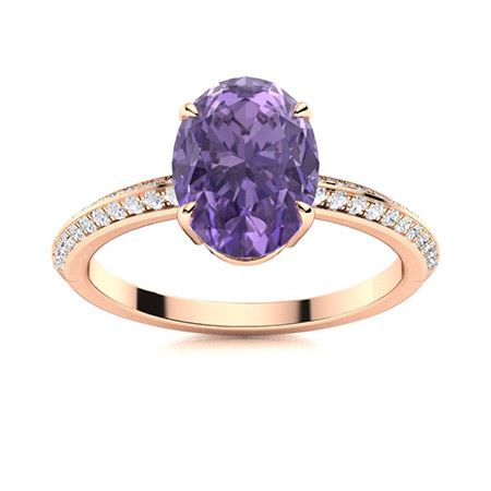 Natural 4.22 CTW Iolite & Diamond Engagement Ring 18K Rose Gold
