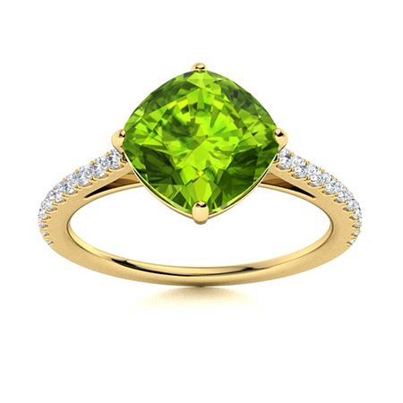 Natural 4.23 CTW Peridot & Diamond Engagement Ring 14K Yellow Gold