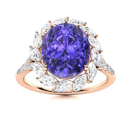 Natural 4.24 CTW Tanzanite & Diamond Engagement Ring 14K Rose Gold