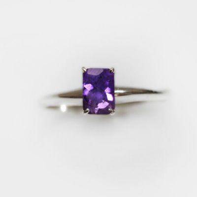 Natural 4.25 ctw Amethyst Emerald .925 Sterling Ring **|**|** ; MSRP: $250