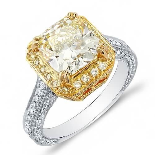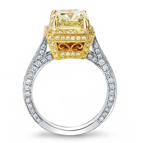 Natural 4.27 CTW Canary Light Yellow Cushion Cut Diamond Engagement Ring 14KT Two-tone