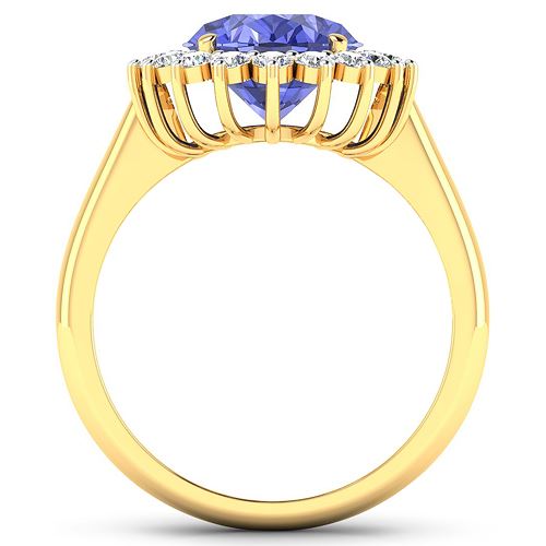 REF-145T3H - Natural 4.29 CTW Tanzanite & Diamond Ring 14K Yellow Gold - REF-145T3H
