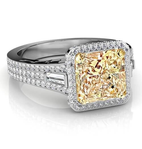 Natural 4.32 CTW Canary Yellow Radiant Cut & Baguette Diamond Engagement Ring 14KT Two-tone