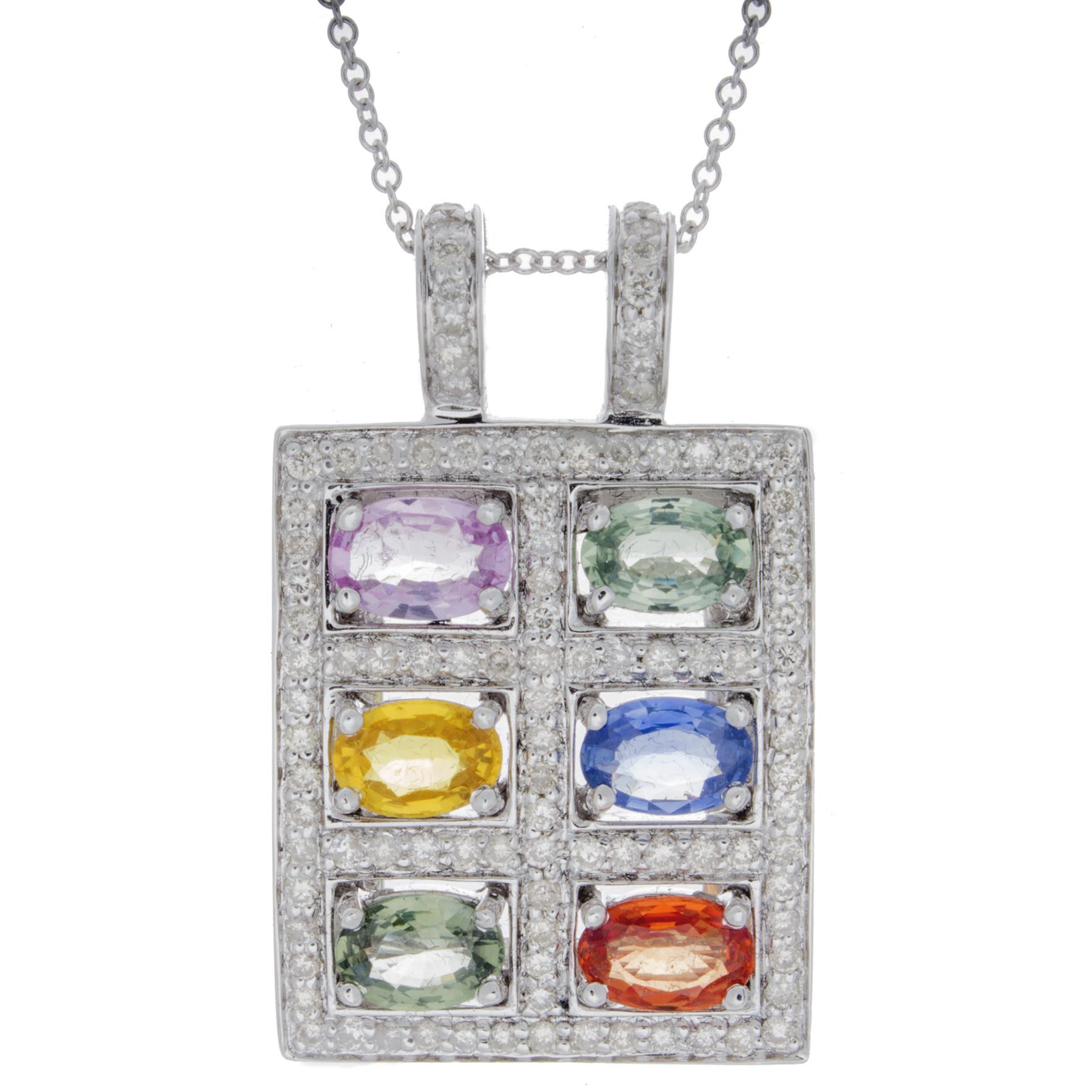 REF-113T4X ---- Natural 4.35 CTW Multi-Sapphire & Diamond Necklace 14K Gold
