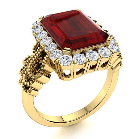 Natural 4.40 CTW Garnet & Diamond Engagement Ring 18K Yellow Gold