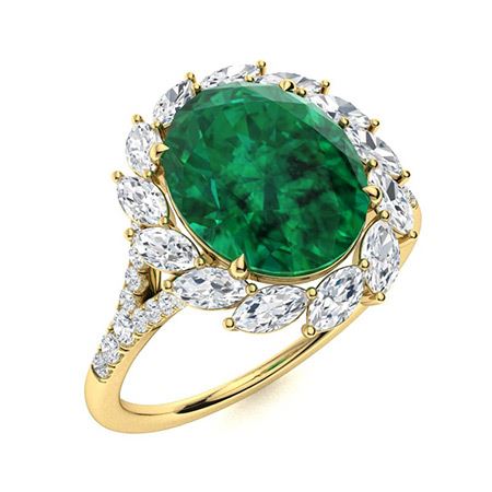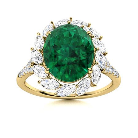 Natural 4.42 CTW Emerald & Diamond Engagement Ring 14K Yellow Gold