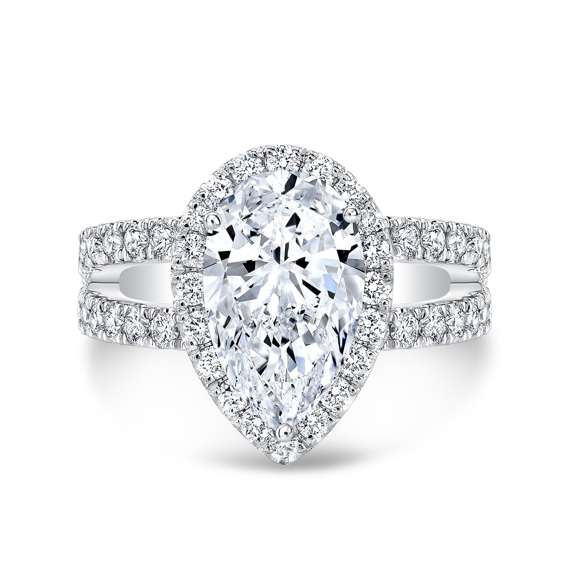 Natural 4.42 CTW Pear Cut Split Shank Diamond Engagement Ring 18KT White Gold