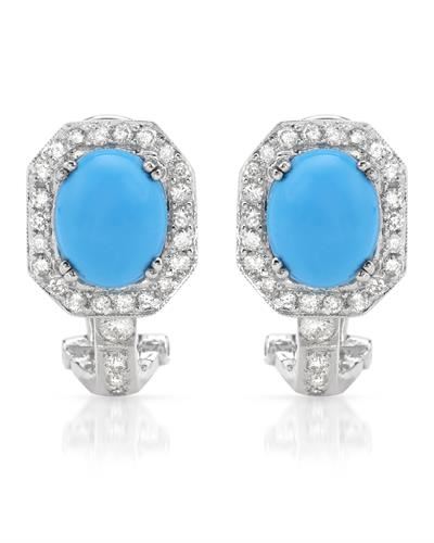 REF-107R3K ---- Natural 4.56 CTW Turquoise & Diamond Earrings 14K White Gold