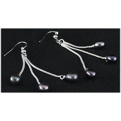 Natural 4.61g Freshwater Dangling Silver Earring **|**|** 2 Inch Long Sterling Silver 3Rows Dyed Black Color Freshwater Pearl Dangling Hook Earring, 6x8mm in size ; MSRP: $300
