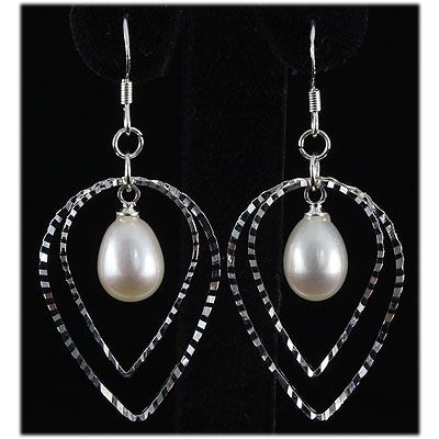 Natural 4.72g Pearl Dangling Sterling Silver Earring **|**|** Diamond Cut Design Sterling Silver Earring w/ Natural White Fresh Water Pearl 8.5mm in size ; MSRP: $300