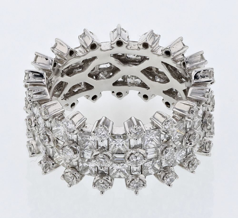 REF-692W3H ---- Natural 4.79 CTW Princess Diamond & Baguette Ring 18K White Gold