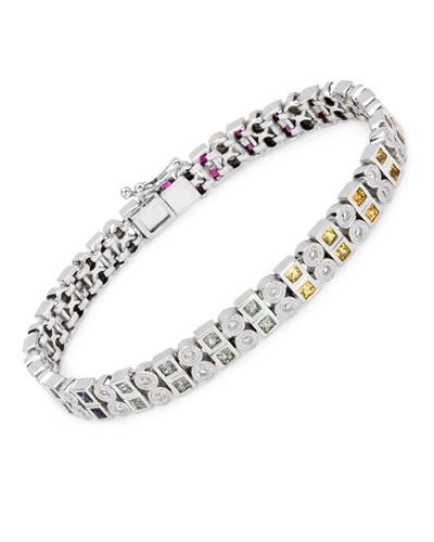 REF-288T2X ---- Natural 4.87 CTW Multi-Sapphire & Diamond Bracelet 14K White Gold