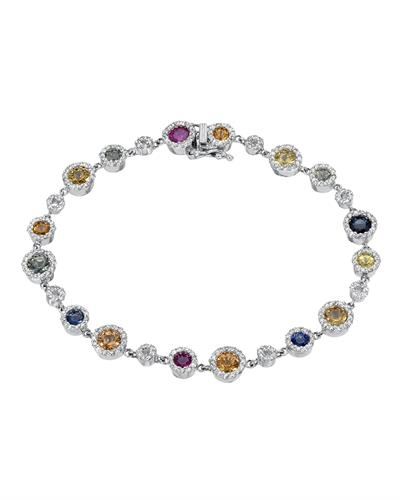 REF-189M9F ---- Natural 4.95 CTW Multi-Sapphire & Diamond Bracelet 14K White Gold