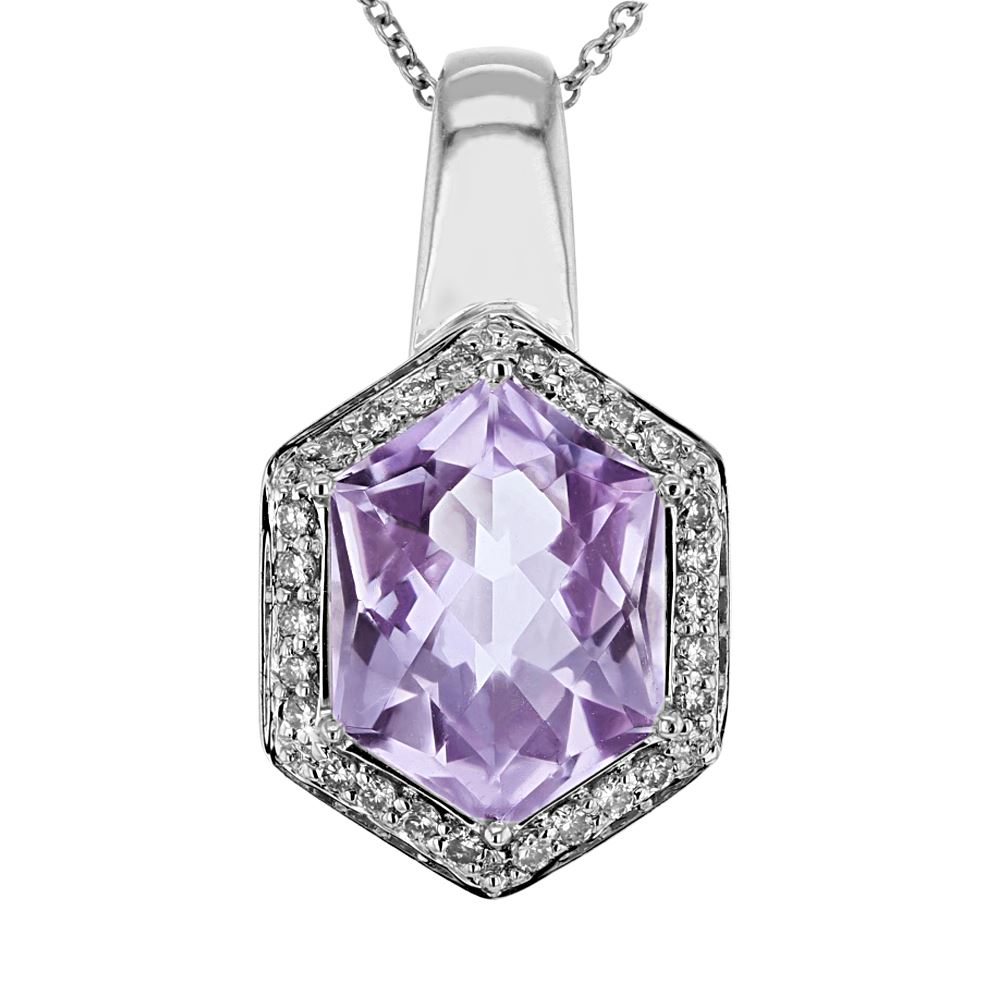 REF-66F6M ---- Natural 4.98 CTW Amethyst & Diamond Necklace 14K Gold