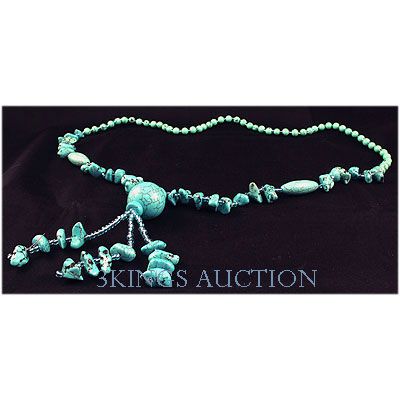 Natural 410.06ctw Turquoise Sterling Silver Necklace **|**|** 30" Gorgeous Sterling Silver Turquoise Necklace. Center round stone 22.42mm in size ; MSRP: $300