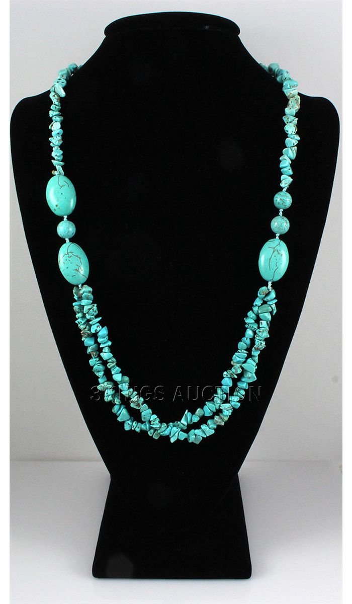 Natural 419.21ctw Turquoise Sterling Silver Necklace **|**|** 28" Double Strand Chunky Turquoise Necklace with Silver Lobster Lock, Silk/Nylon Thread ; MSRP: $300