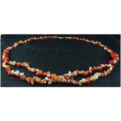 Natural 433.73ctw Orange Carnelian Quartz Silver Neckla **|**|** Lovely 26" Orange Carnelian Quartz Beads Necklace and 2 Row Design with Sterling Silver Lobster Lock ; MSRP: $300
