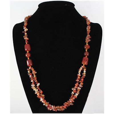Natural 433.73ctw Orange Carnelian Quartz Silver Neckla **|**|** Lovely 26" Orange Carnelian Quartz Beads Necklace and 2 Row Design with Sterling Silver Lobster Lock ; MSRP: $300