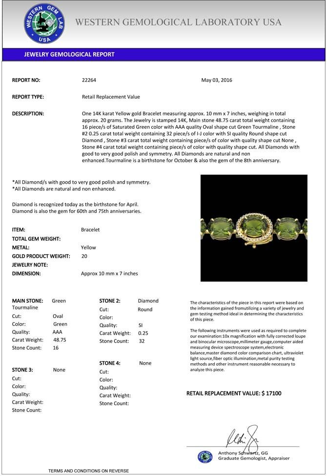 total approx. 20 grams. The Jewelry is stamped 14K, Main stone 48.75 carat total weight containing 16 piece/s of Saturated Green color with