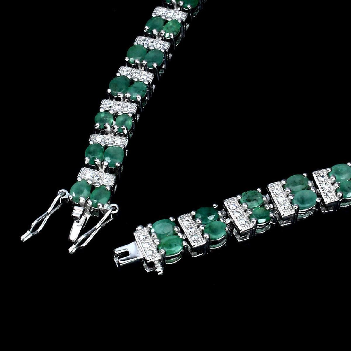 925 STERLING SILVER;PLATE.....14K WHITE GOLD;.....LENGTH (INCHES)7.5MAIN STONEEMERALDOTHER GEMSCUBIC ZIRCONIATOTAL WEIGHT85.69 CT (TOTAL WEIGHT OF SILVER + STONE)DIMENSION* STONE 4.0 X 3.0 MM. * CZ 1.0 MM. * FACE EARRINGS 190.0 X 6.0 MM.MAIN STONE SHAPEOVAL CUTMAIN STONE COLORTOP RICH GREENCLARITY/GRADETRANSPARENTLUSTERGRACEFULLYTREATMENTUNHEATEDORIGINBRAZIL