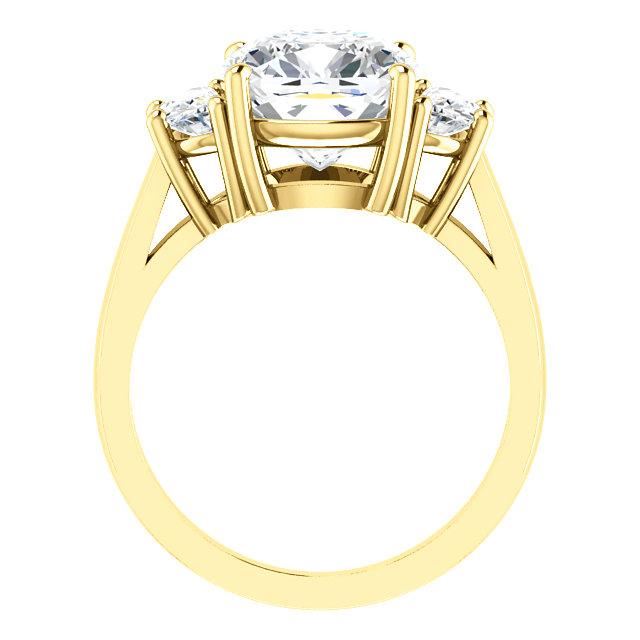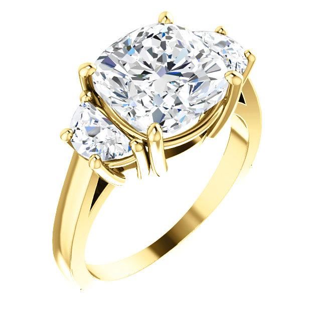 Natural 5.02 CTW 3-stone Cushion Cut & Half Moons Diamond Ring 18KT Yellow Gold