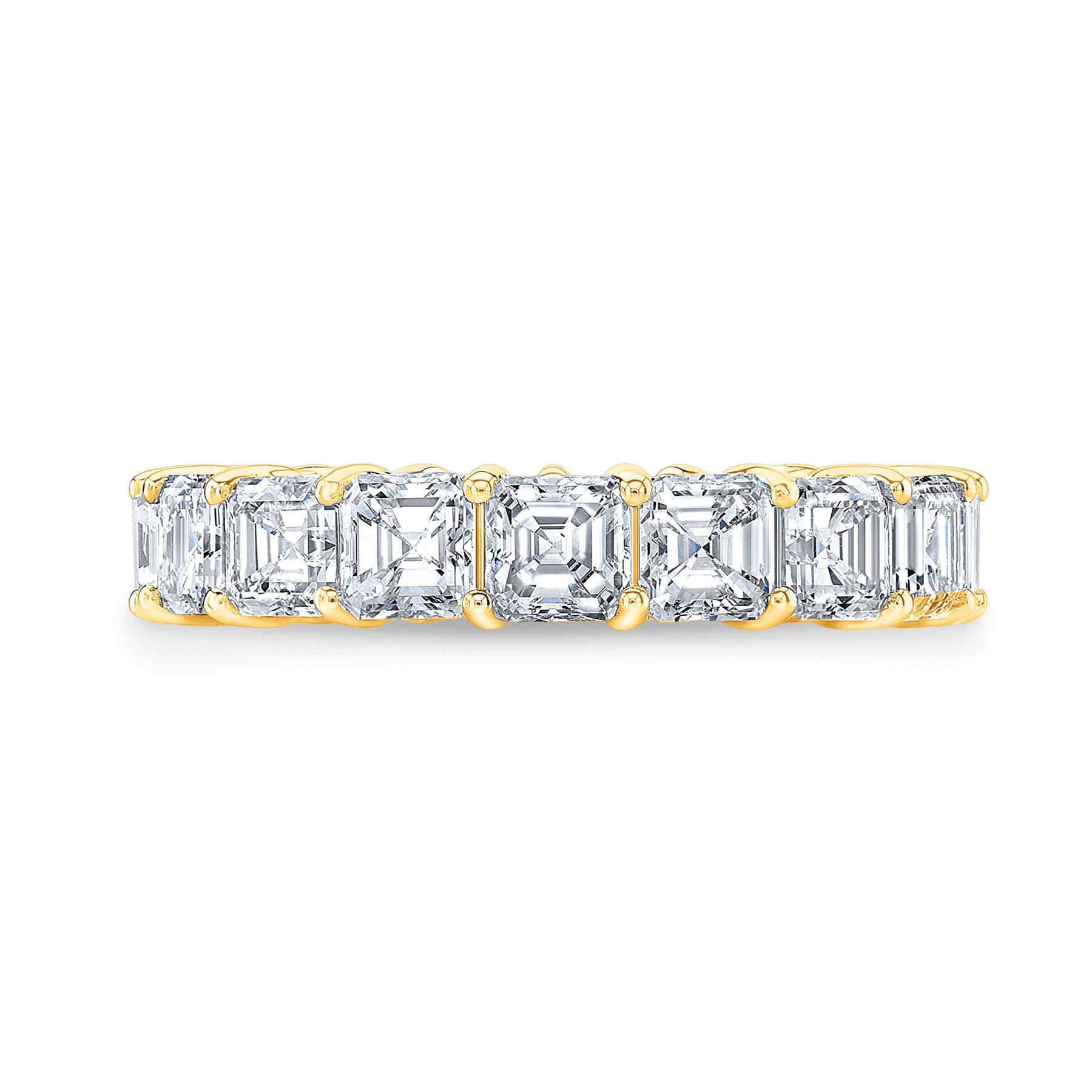 Natural 5.02 CTW Asscher Cut Diamond Eternity Band Wedding Ring 18KT Yellow Gold