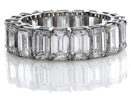 Natural 5.02 CTW Emerald Cut Diamond Eternity Ring 14KT White Gold