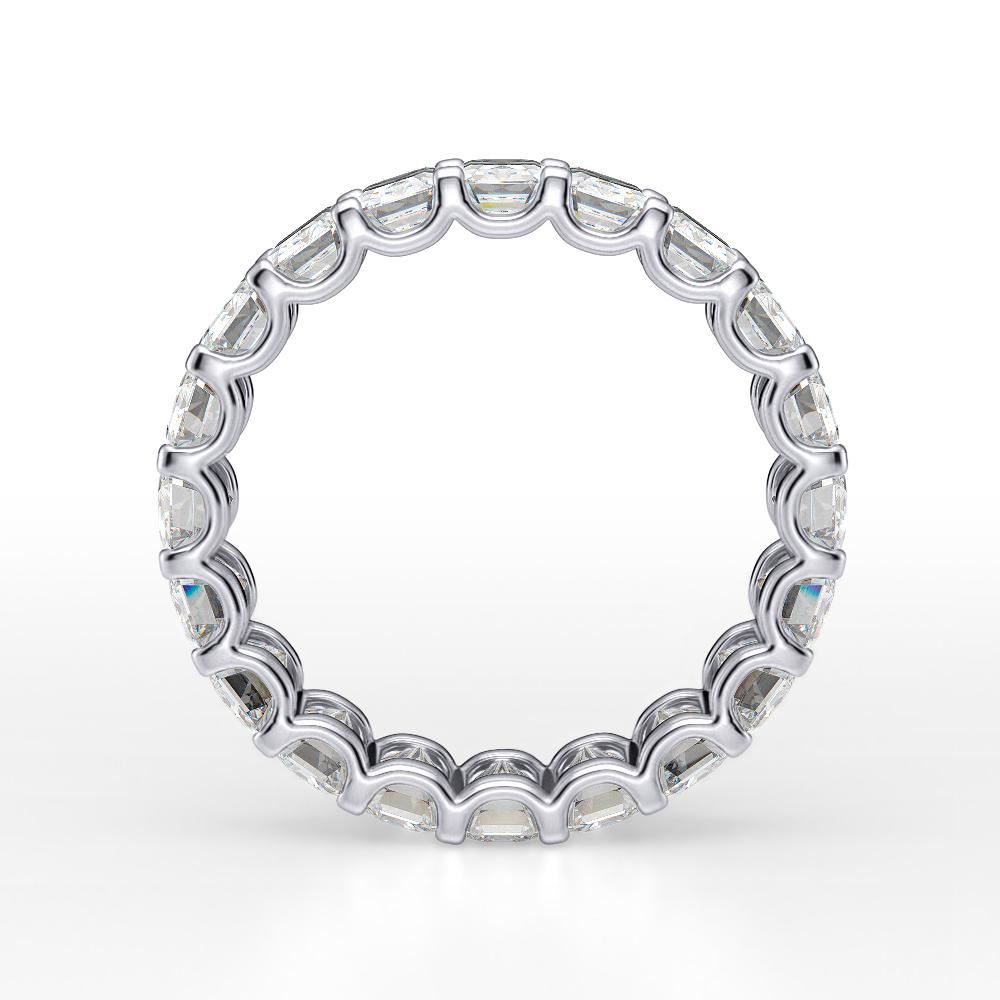 Natural 5.02 CTW U- Setting Emerald Cut Diamond Eternity Ring 14KT White Gold