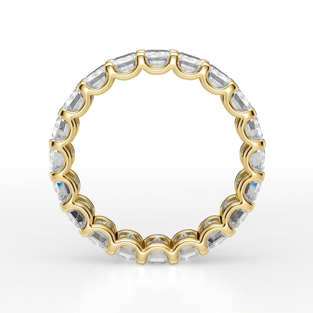 Natural 5.02 CTW U- Setting Emerald Cut Diamond Eternity Ring 18KT Yellow Gold