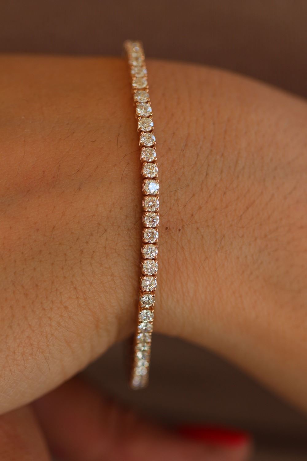 REF-401W3H - SKU: BR80005 ---- Natural 5.07 ctw Diamond Eternity Tennis Bracelet 18K Rose Gold