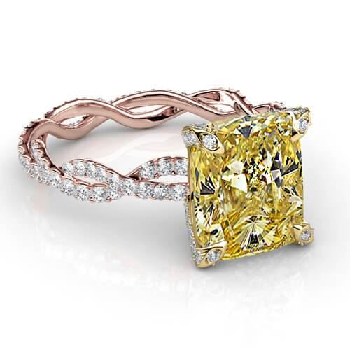 Natural 5.22 CTW Canary Cushion Cut Diamond Eternity Twist Shank Ring 14KT Two-tone