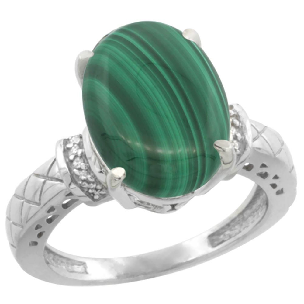 REF-53M9H ---- SKU:SC-CW447200 ---- Manufacturer's Suggested Retail Price - $1700.00 ---- Natural 5.53 ctw Malachite & Diamond Engagement Ring 14K White Gold