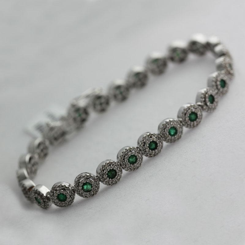 Item details: DIAMOND: 725 Round cut White Diamond @ 2.92ct ---GEMSTONE: 25 Emerald @ 2.66ct---METAL: 14K White Gold---Metal weight 20.85 grams---SKU: 286454C-1 --- Consignor: RC Fine Jewelers --- Availability: Ready to Ship